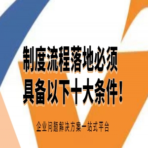 制度流程落地必须具备以下十大条件! 现实中,很多企业通过各种方式花费人力、物力等建立了诸多的企业管理制度和流程,结果却发现管理制度流程不是躺在柜子里面呼噜大觉,就是成为墙壁上的装......